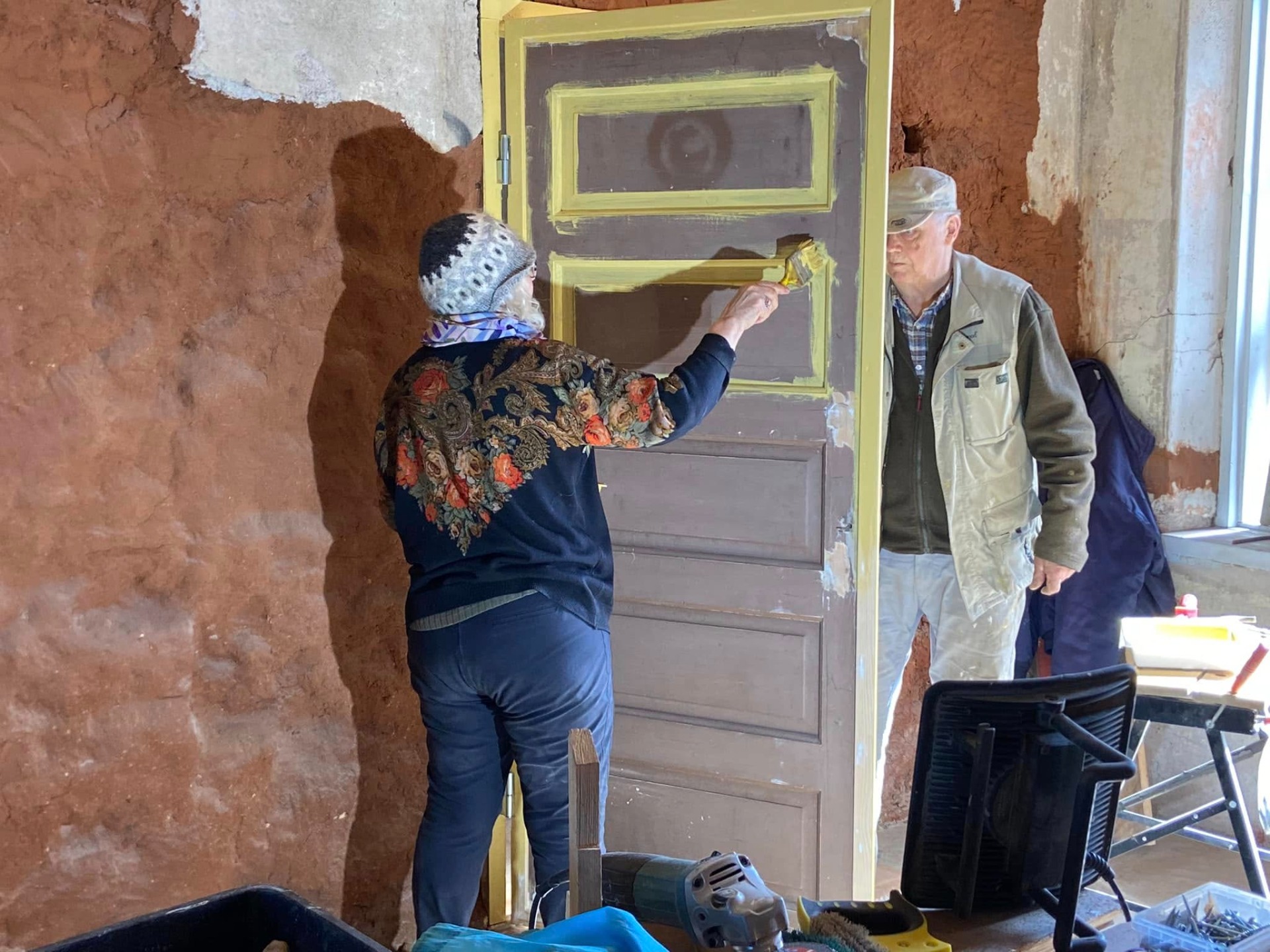 Tampereen yliopiston arkkitehtiopiskelijat savirappasivat alakerran kolmen huoneen seinät ja savivaloivat niiden lattiat vanhaa menetelmää käyttäen. Ennen niitä huoneiden kreosoottia sisältäneet betonilattiat purettiin ilmatiiviisti. Talkootyötä tehtiin taas paljon ennen rappaus- ja valutöitä.